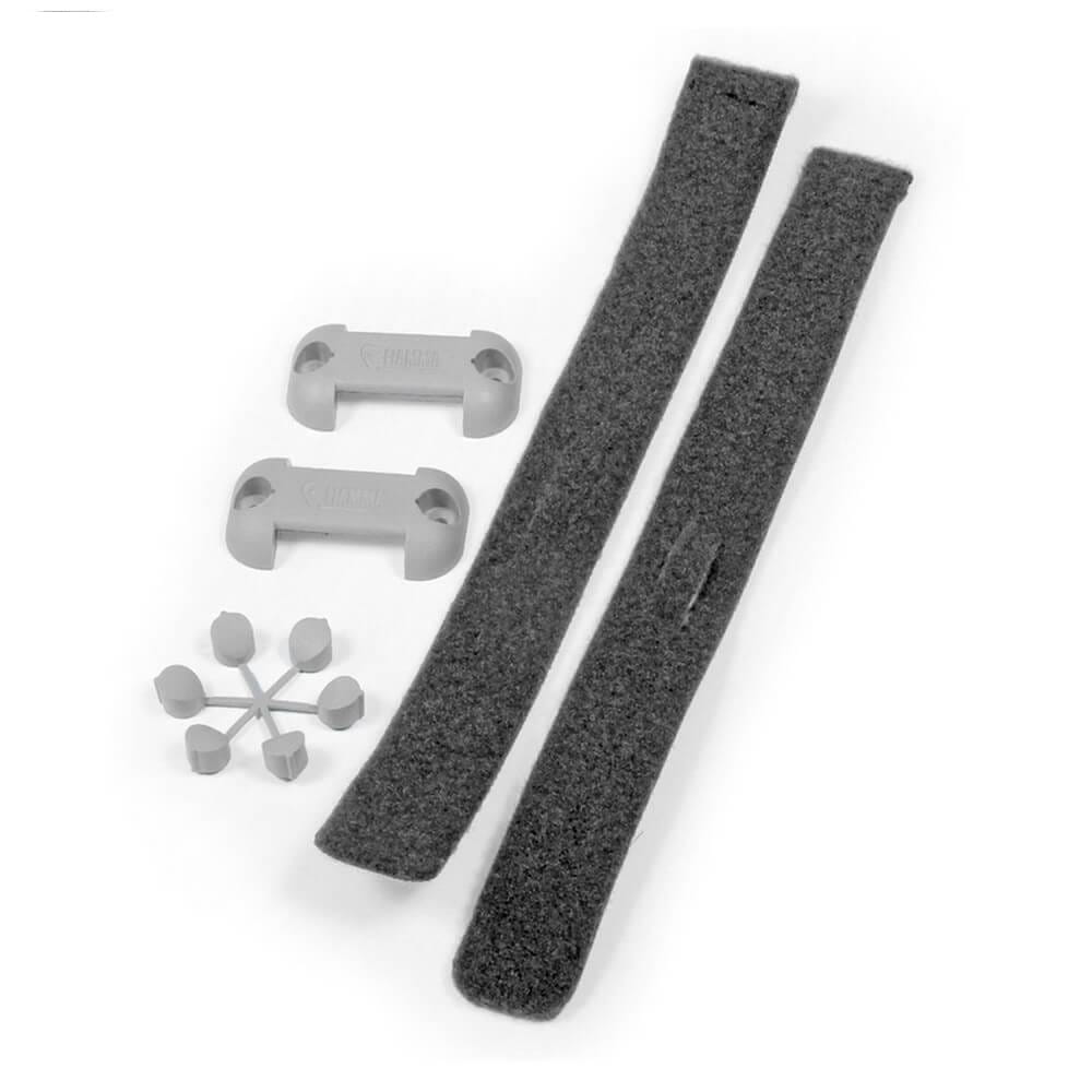 System mocowania z paskami na rzepy do mocowania i przechowywania Fiamma Tube Pro na ścianie.