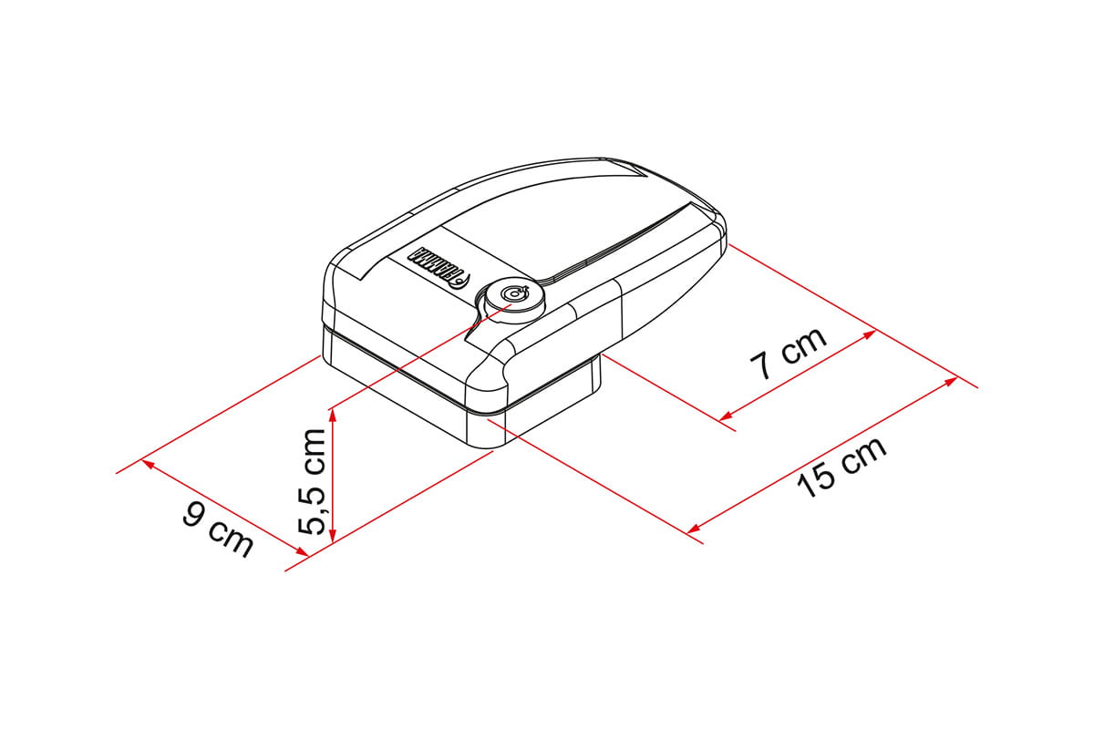Zamek zewnętrzy idealnie się sprawdzi jako dodatkowe zabezpieczenie kampera lub przyczepy, można go łatwo montować do ściany pojazdu za pomocą śrub i wewnętrznych wsporników. Dostępny w 3 kolorach: białym, szarym (nowość) i czarnym.