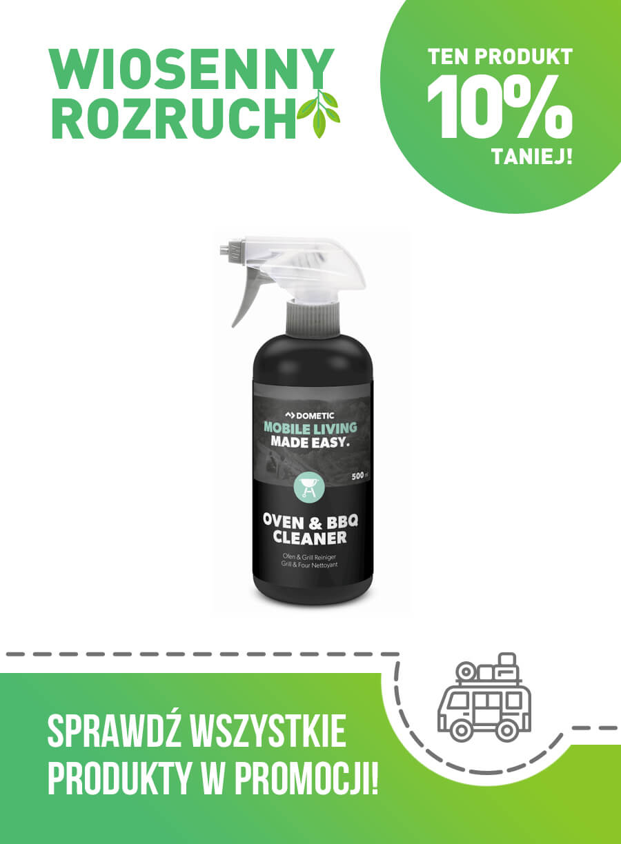 Środek do czyszczenia Dometic Oven & BBQ jest przeznaczony do kuchenek i grilli. Jego silna formuła żelowa usunie nawet najgorsze przypalenia żywności i tłuszczu. Praktyczny w użyciu na powierzchniach pionowych, ma naturalny zapach oraz pozostawia błyszczące urządzenia.