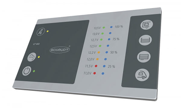 - Wyświetlacz napięcia w 8 poziomach do salonu i akumulatora rozruchowego.