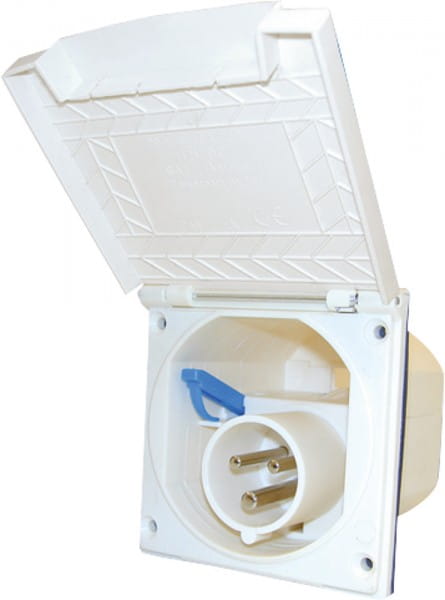 Zewnętrzne gniazdo CEE17 z przykrywką.
