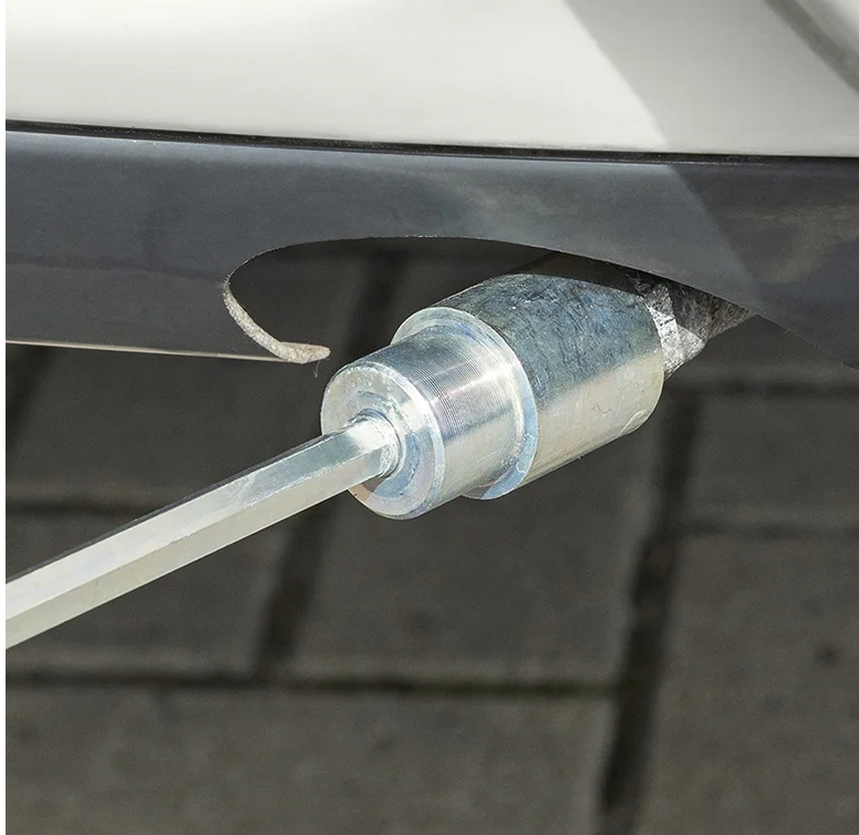 Sześcienny kształt przedłużki zapewnia pewny chwyt w końcówce wkrętarki, znacznie ułatwiając obsługę podpór przyczepy.