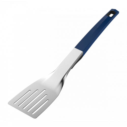 Wykonana ze zmatowionej stali nierdzewnej. Rączka z niebieską, silikonową nakładką pozwala na pewny i bezpieczny uchwyt. Duży otwór w rączce ułatwia zawieszenie. Nadaje się do zmywarki.