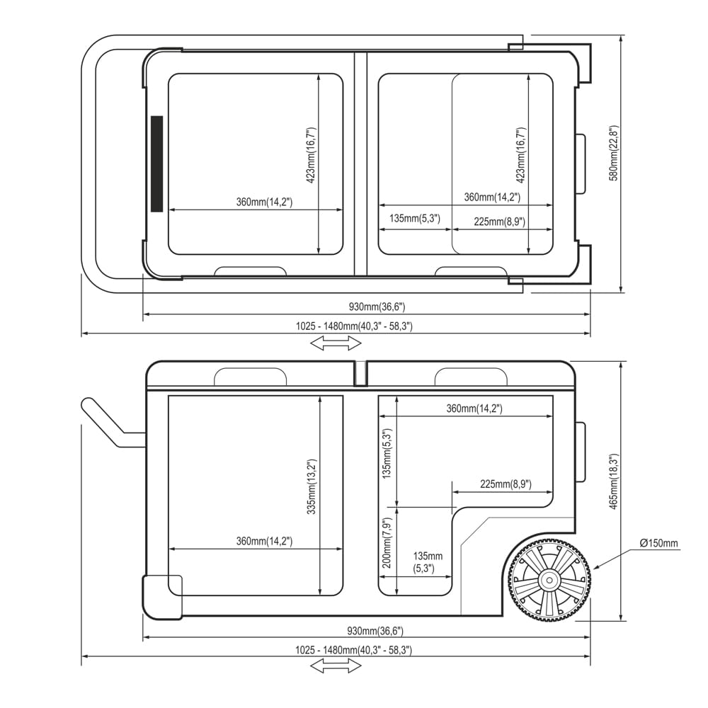 - Wymiary (szer. x wys. x gł.) w mm: 1025 x 465 x 580 (cale: 40,3" x 18,3" x 22,8")