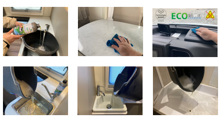 - Dezynfekcja zbiorników i układów wody czystej oraz szarej w kamperach, przyczepach kampingowych, a także jachtach.