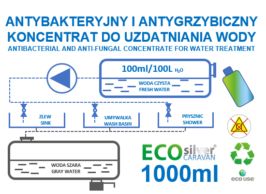 ECOsilver CARAVAN® to ekologiczny produkt z nanocząsteczkami srebra do czyszczenia zbiorników oraz uzdatniania i stabilizacji mikrobiologicznej wody.