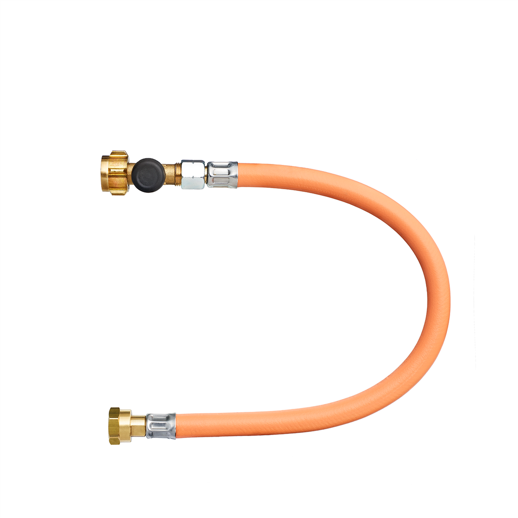 Wąż gazowy wysokociśnieniowy z zaworem zabezpieczającym wyciek gazu.